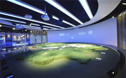 在科普馆设计中,常用到数字沙盘、虚拟现实、全息、智能机器人、环幕投影系统等数字化技术,其中互动投影沙盘,已经成为科技类场馆内最适合的一项技术,用来展示各种规划方向、原理演示、场馆概述、科技演示流程等内容的展项。